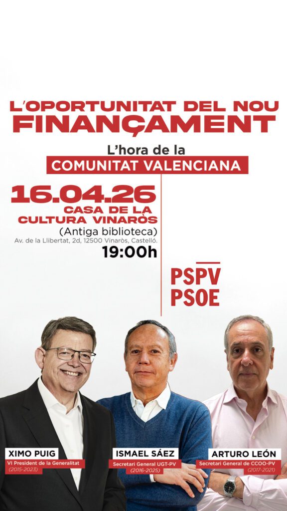 L’acte “L’oportunitat del nou finançament: L’hora de la Comunitat Valenciana” tindrà lloc el 16 d’abril a les 18:30 h a la Casa de la Cultura.