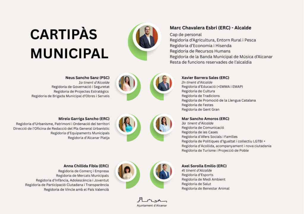 Després de l’elecció i presa de possessió de Marc Chavalera Esbri (ERC) com a nou alcalde d’Alcanar, aquest dimarts, 20 de gener, el batle entrant va dictar el corresponent decret d’alcaldia de delegació