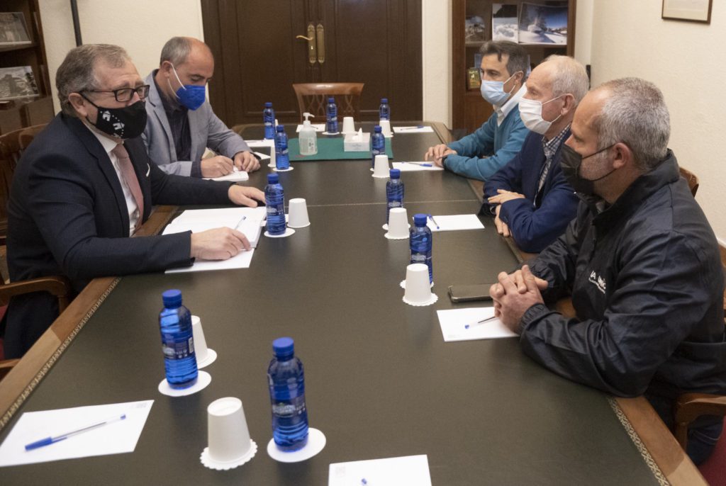 Castelló, 14 de marzo de 2022. El presidente de la Diputación, José Martí, ha mostrado su intención de que la institución actúe «como altavoz de los problemas y el sentir del sector agrario y ganadero de la provincia ante instituciones de rango superior, como la Generalitat Valenciana, el Gobierno de España y la Unión Europea». Así se lo ha hecho saber al secretario general de la Unió de Llauradors i Ramaders, Carles Peris, y al presidente de AVA-ASAJA, Cristóbal Aguado, con los que se ha reunido para diseñar posibles estrategias de trabajo que ayuden a mejorar la situación de grave dificultad por la que está atravesando el sector primario de la provincia. El presidente ha señalado que «queremos estar al lado de los profesionales de una actividad que es fundamental para nuestra sociedad».
